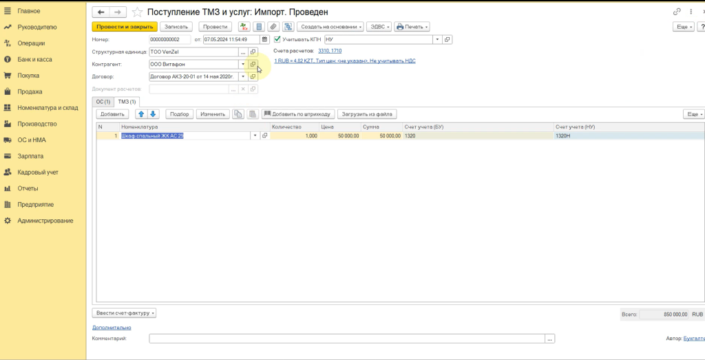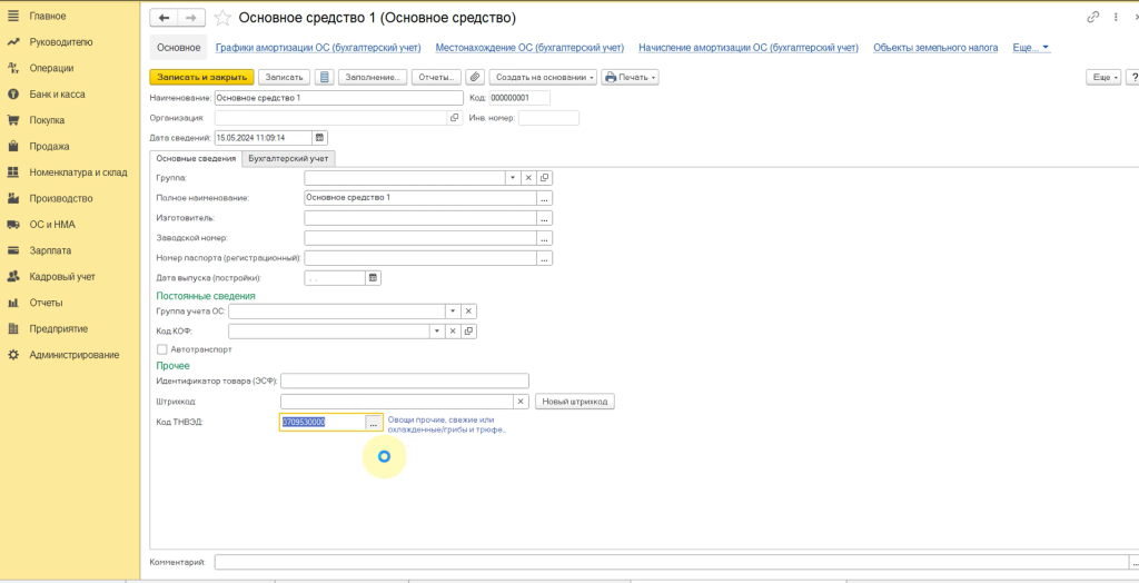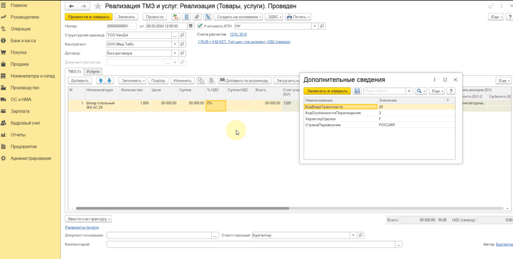 Статистическая форма 1 ТС в 1С:Бухгалтерия для Казахстана