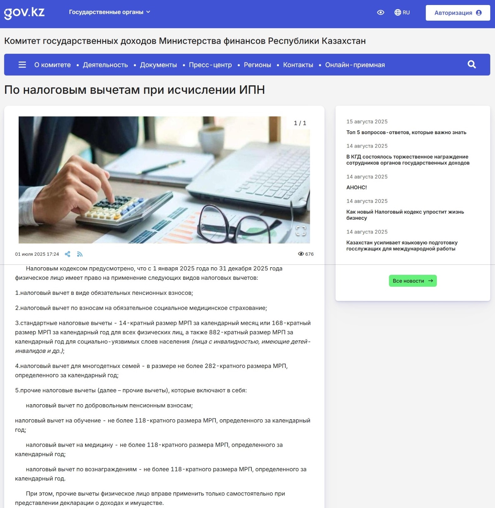 (Разъяснение КГД МФ РК от 01.07.2025)