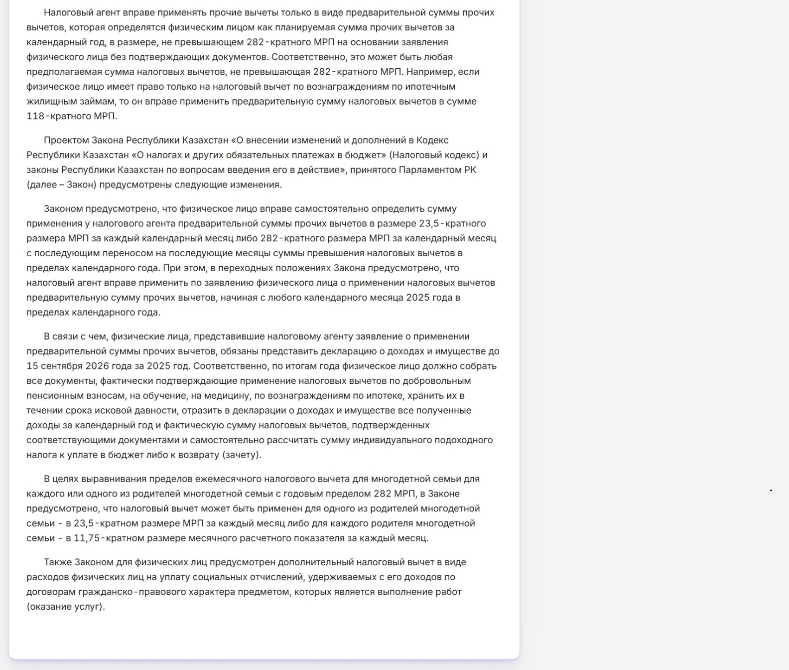 - Вычет для многодетных семей — до 282-кратного размера МРП в год.